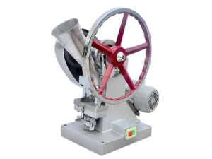 TDP laboratory single punch tablet press, driven by a motor, is capable of pressing all kinds of granules or coarse powders into round tablets. It is a small desktop continuous tableting machine with only one set of die. Therefore, the tablet machine is generally suitable for small scale production of sugar and calcium tablets and so on. Currently, such tablet press is extensively applied in pharmaceutical and chemical factories, hospitals, scientific research institutions, and laboratories.